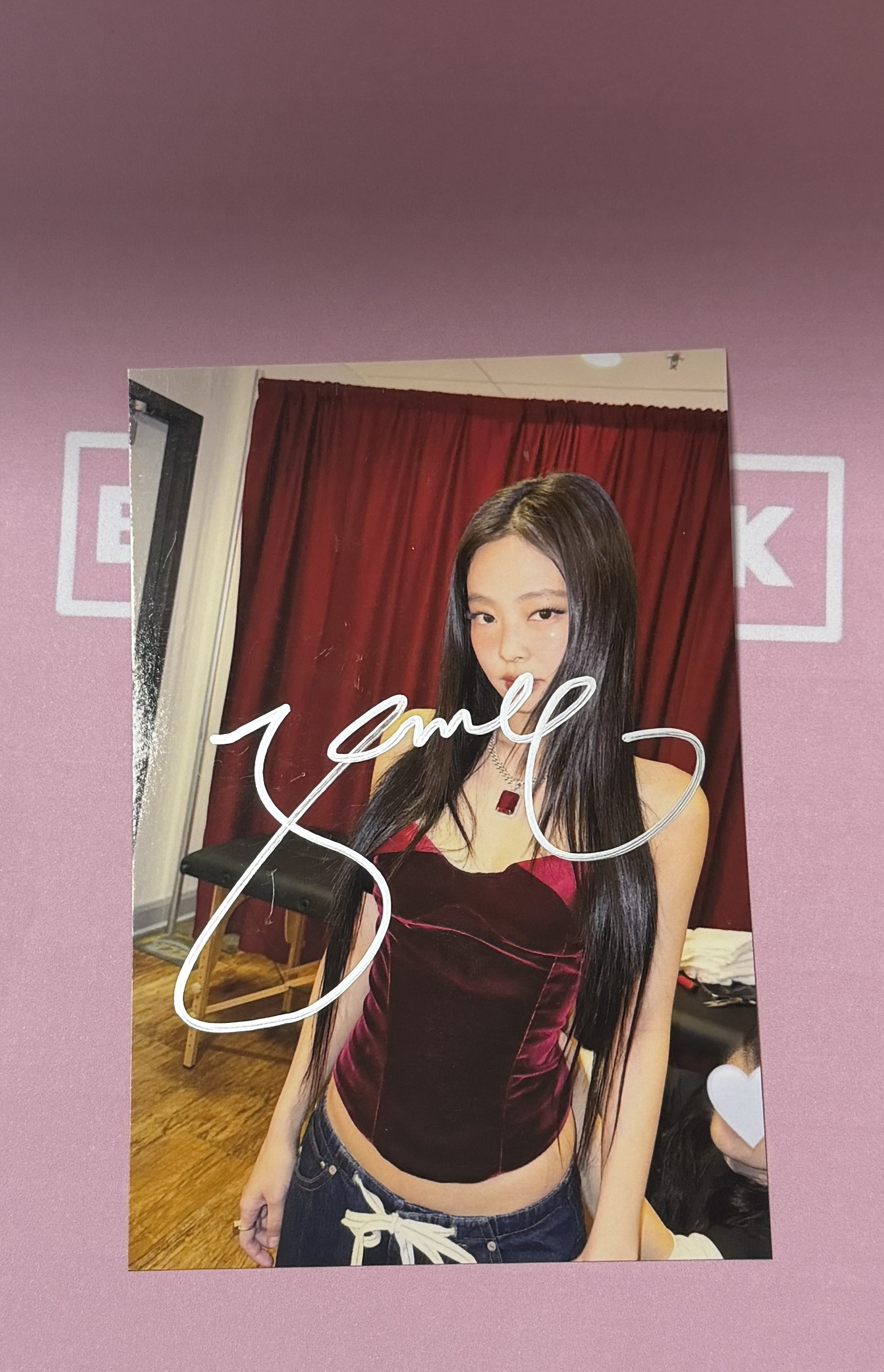 Physical signed BLACKPINK collectible featuring Jennie. Actual item photo shown.