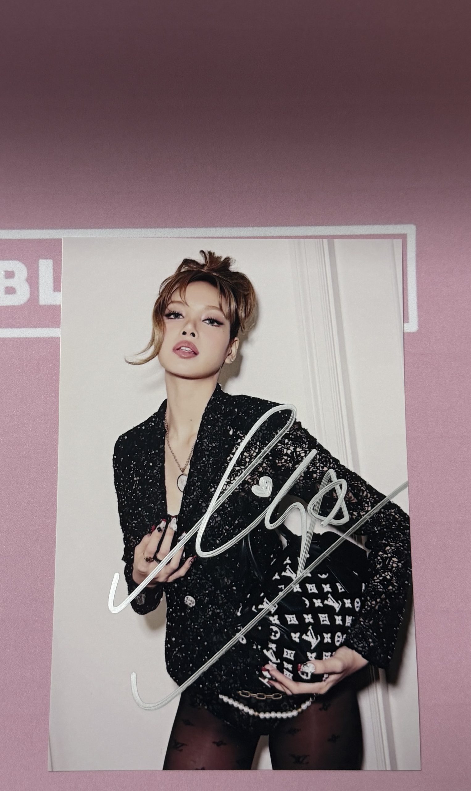 Physical signed BLACKPINK collectible featuring Lisa. Actual item photo shown.