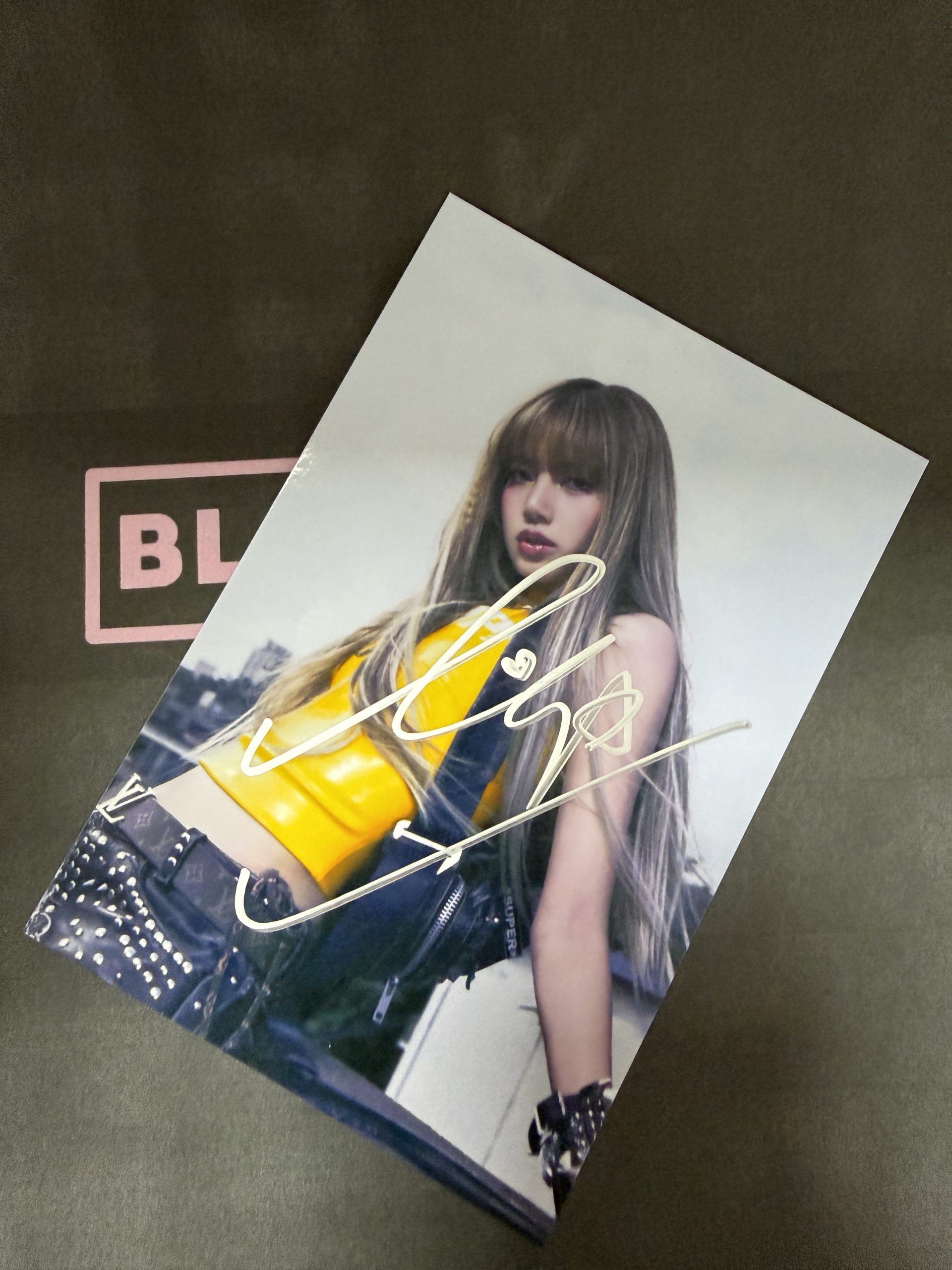 Physical signed BLACKPINK collectible featuring Lisa. Actual item photo shown.