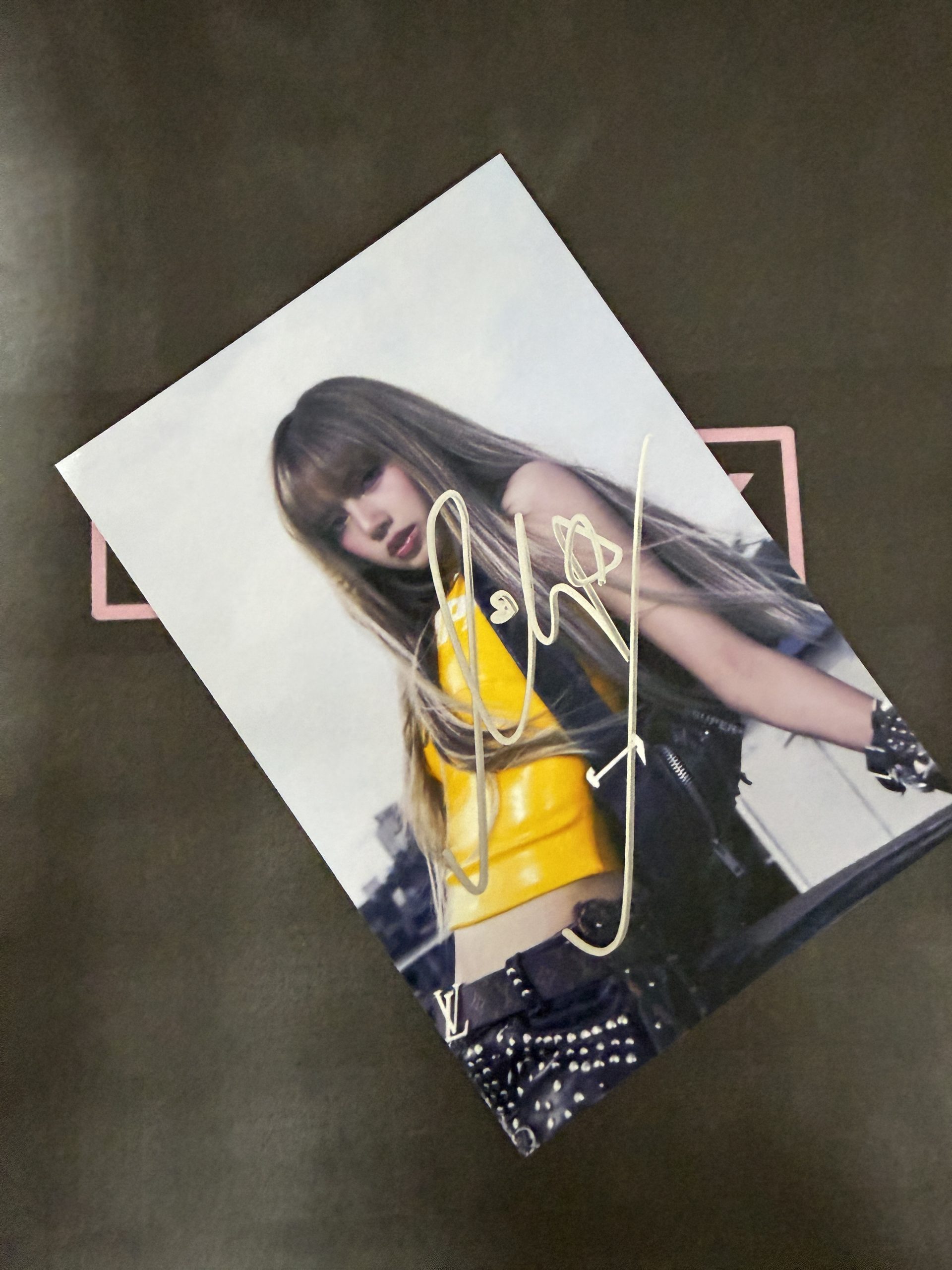Physical signed BLACKPINK collectible featuring Lisa. Actual item photo shown.